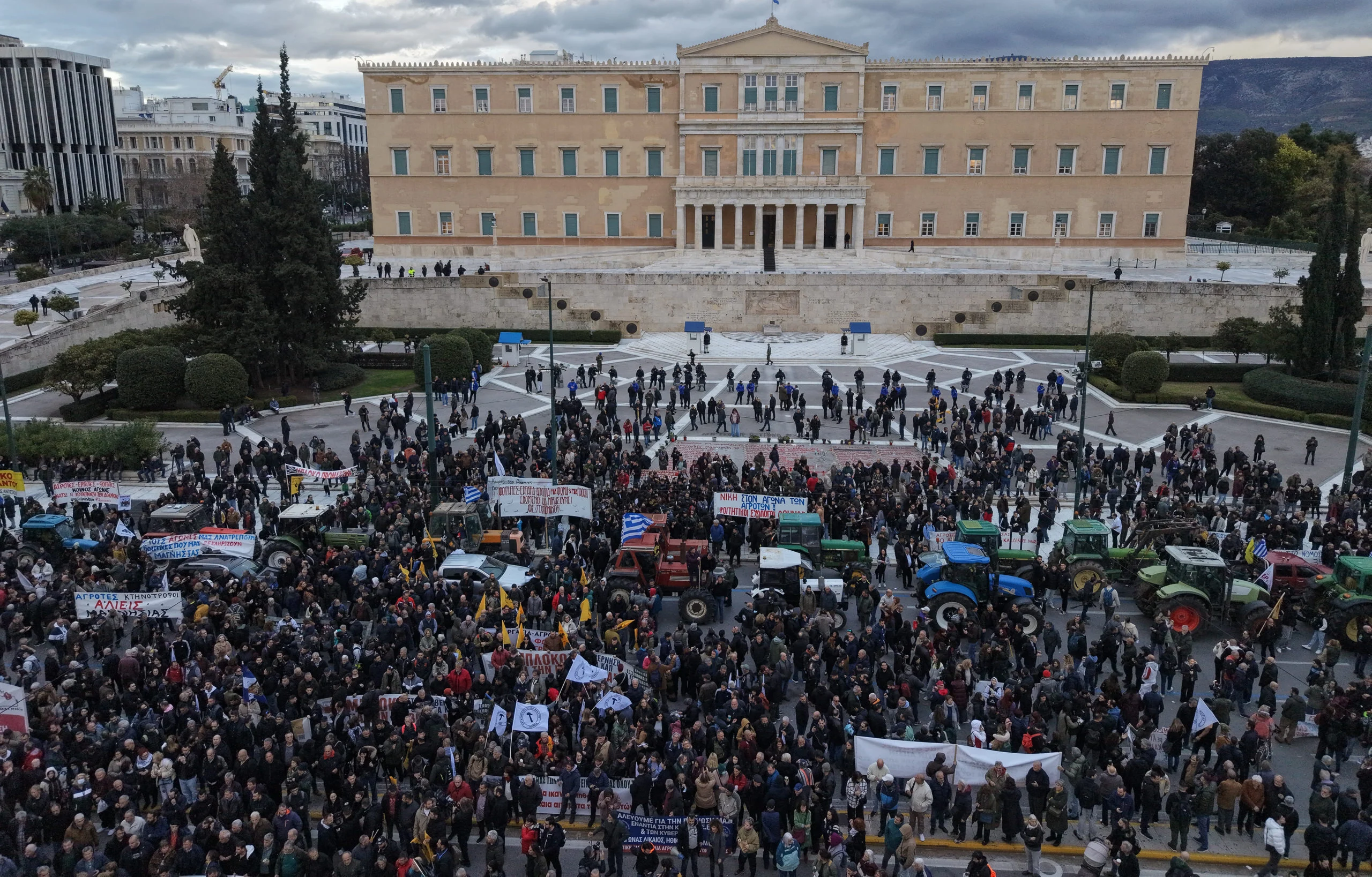 Λίγη ώρα μετά τις 21:00, οι περισσότεροι αγρότες αποχώρησαν από το Σύνταγμα, ενώ τα τρακτέρ τους παραμένουν σταθμευμένα ακριβώς μπροστά από την Βουλή.