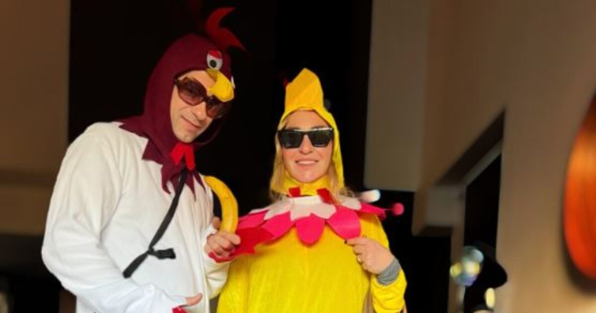 Σε κοινό στιγμιότυπο, η φωτογράφος ποζάρει ντυμένη κοτόπουλο δίπλα στον ηθοποιό, ο οποίος έχει μεταμορφωθεί σε κόκορα. Στην ανάρτησή της στο Instagram, η Ρούλα Ρέβη μοιράστηκε επίσης εικόνες με τα παιδιά τους με τον Αποστόλη Τότσικα.