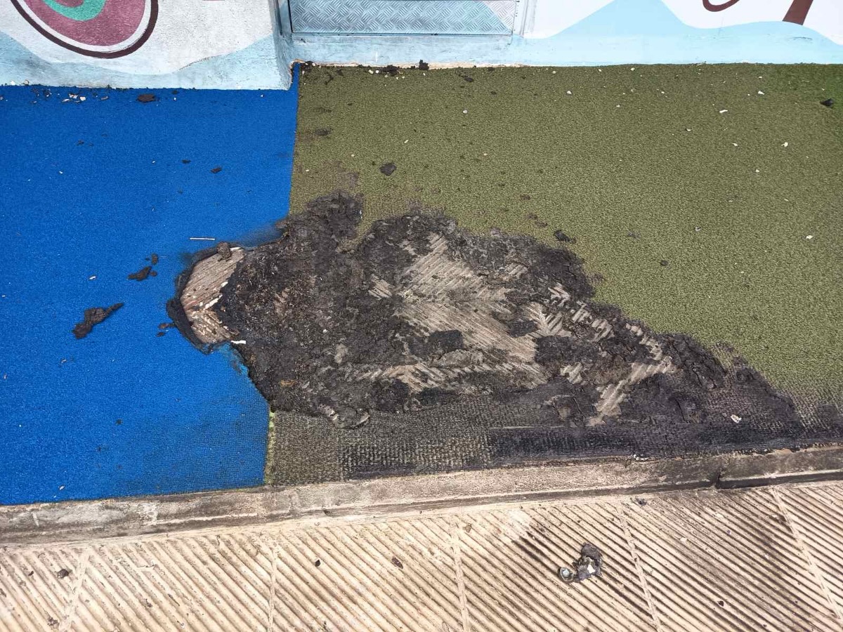 Στο σχετικό φωτογραφικό υλικό που δημοσιεύει ο δήμος από το σημείο οι ζημιές είναι εμφανείς. Το δάπεδο ασφαλείας (τάπητας) του προαυλίου έχει λιώσει σε αρκετά σημεία, ενώ μαύροι καπνοί έχουν καλύψει τη μαρκίζα και την πρόσοψη του νηπιαγωγείου, ακριβώς πάνω από τις πολύχρωμες τοιχογραφίες που κοσμούν το σχολείο.