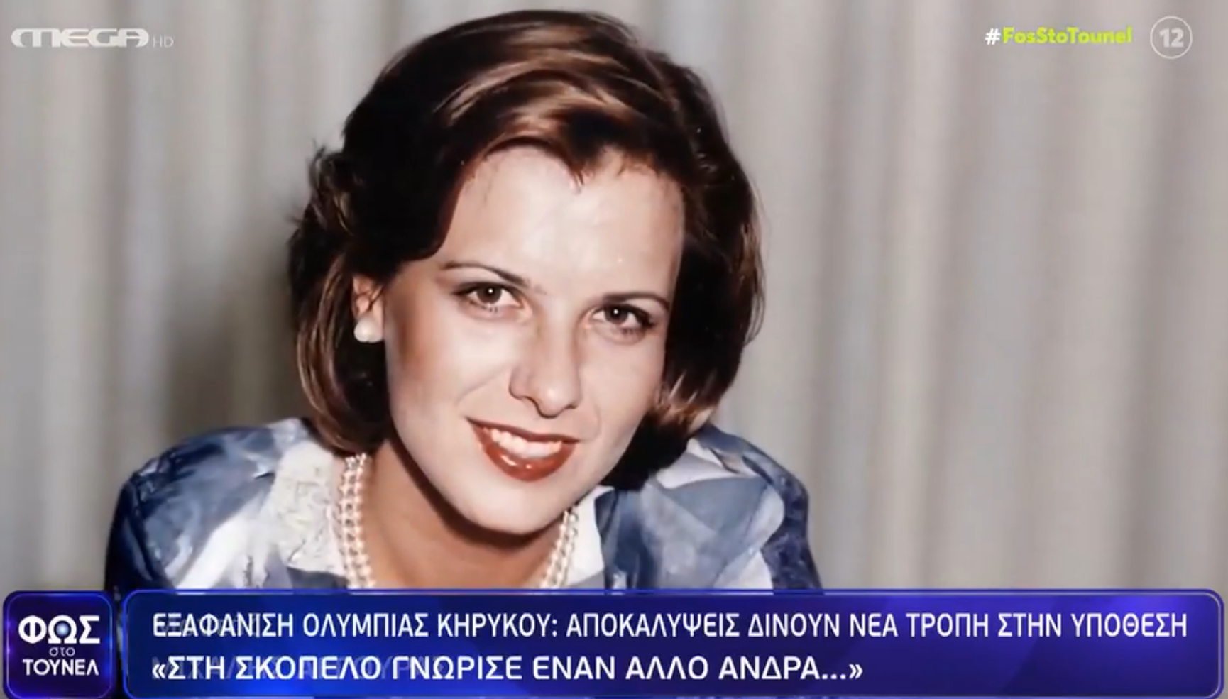 Νέα στοιχεία σ’ ένα από τα πιο σκοτεινά και πολύκροτα θρίλερ εξαφάνισης στην Ελλάδα, την υπόθεση της Ολυμπίας Κηρύκου, που εξαφανίστηκε το Νοέμβριο του 1995, φέρνει η εκπομπή το «Φως στο Τούνελ», δημοσιοποιώντας τη μαρτυρία της στενής της φίλης, η οποία κατονομάζεται στο σημείωμα που άφησε η Ολυμπία στον σύζυγό της πριν εξαφανιστεί.