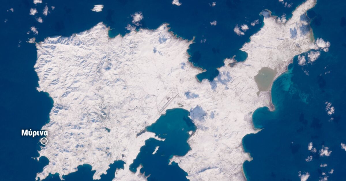 Δορυφορική εικόνα της Λήμνου καλυμμένη με χιόνι / Meteo