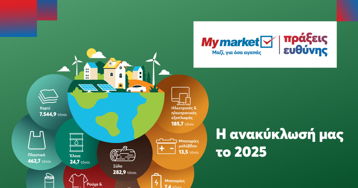 Στο πλαίσιο του προγράμματος εταιρικής υπευθυνότητας με τίτλο «Πράξεις Ευθύνης», η εταιρεία συγκέντρωσε μέσα στο 2025 περισσότερους από 8.600 τόνους υλικών, εφαρμόζοντας ένα ολοκληρωμένο πρόγραμμα ανακύκλωσης στο δίκτυό των καταστημάτων My market, των METRO Cash & Carry, των κέντρων διανομής και των γραφείων.