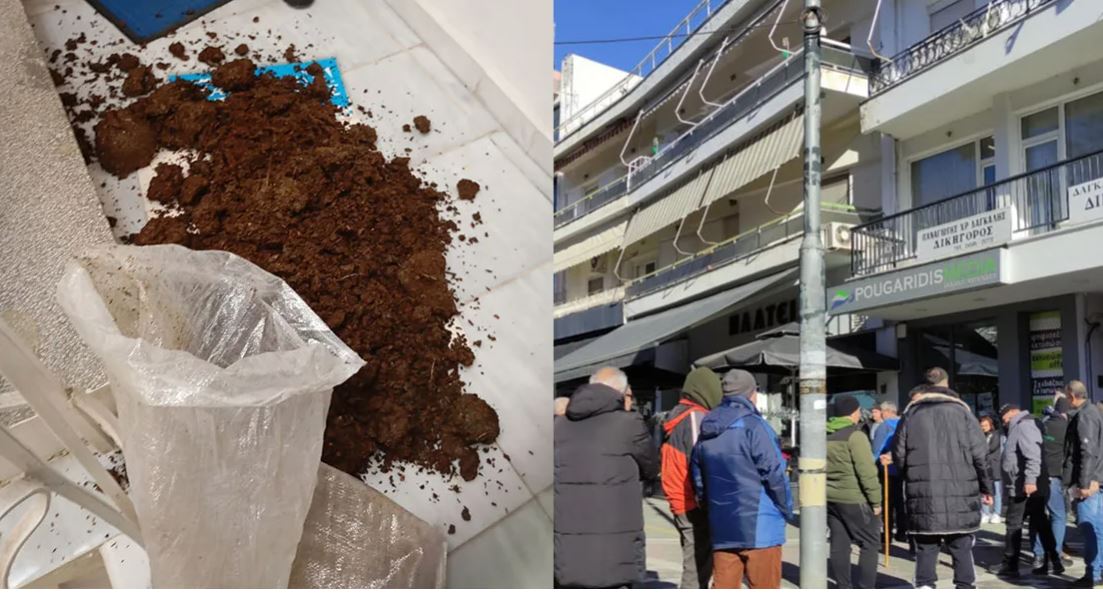 Αγρότες στο πλαίσιο διαμαρτυρίας, επισκέφθηκαν το πρωί το πολιτικό γραφείο του Στάθη Κωνσταντινίδη στην Πτολεμαΐδα και πέταξαν κοπριά.