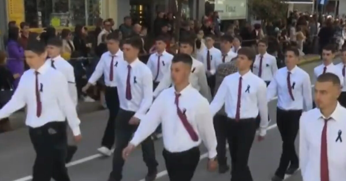 Κατά τη διάρκεια της παρέλασης, οι συμμαθητές του περπάτησαν με σοβαρότητα και σιωπή, εμφανώς συγκινημένοι.