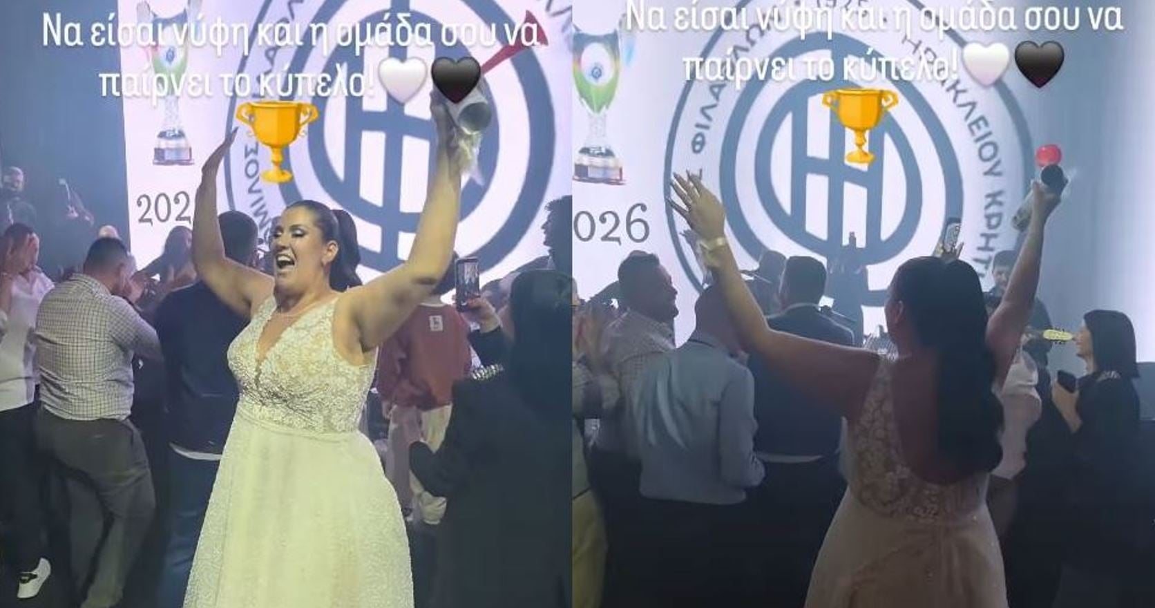 Μία τρομερή νύφη στο Ηράκλειο, η οποία παντρεύτηκε τον αγαπημένο της το Σάββατο, γιόρτασε με την ψυχή της τη νίκη της ομάδας της, την ώρα της δεξίωσης του γάμου της.